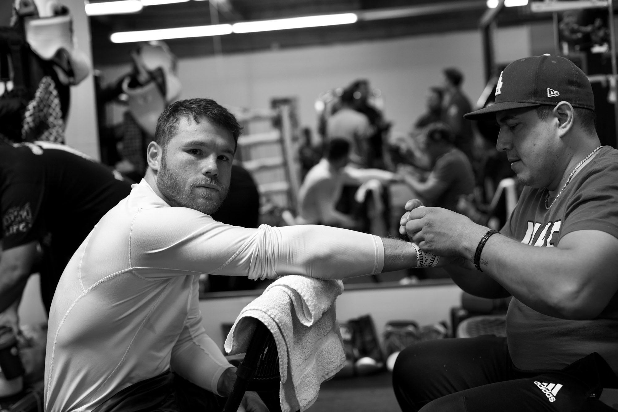 Saul Canelo Alvarez hand wraps A San Diego 2019 (Sonya Jasinski)