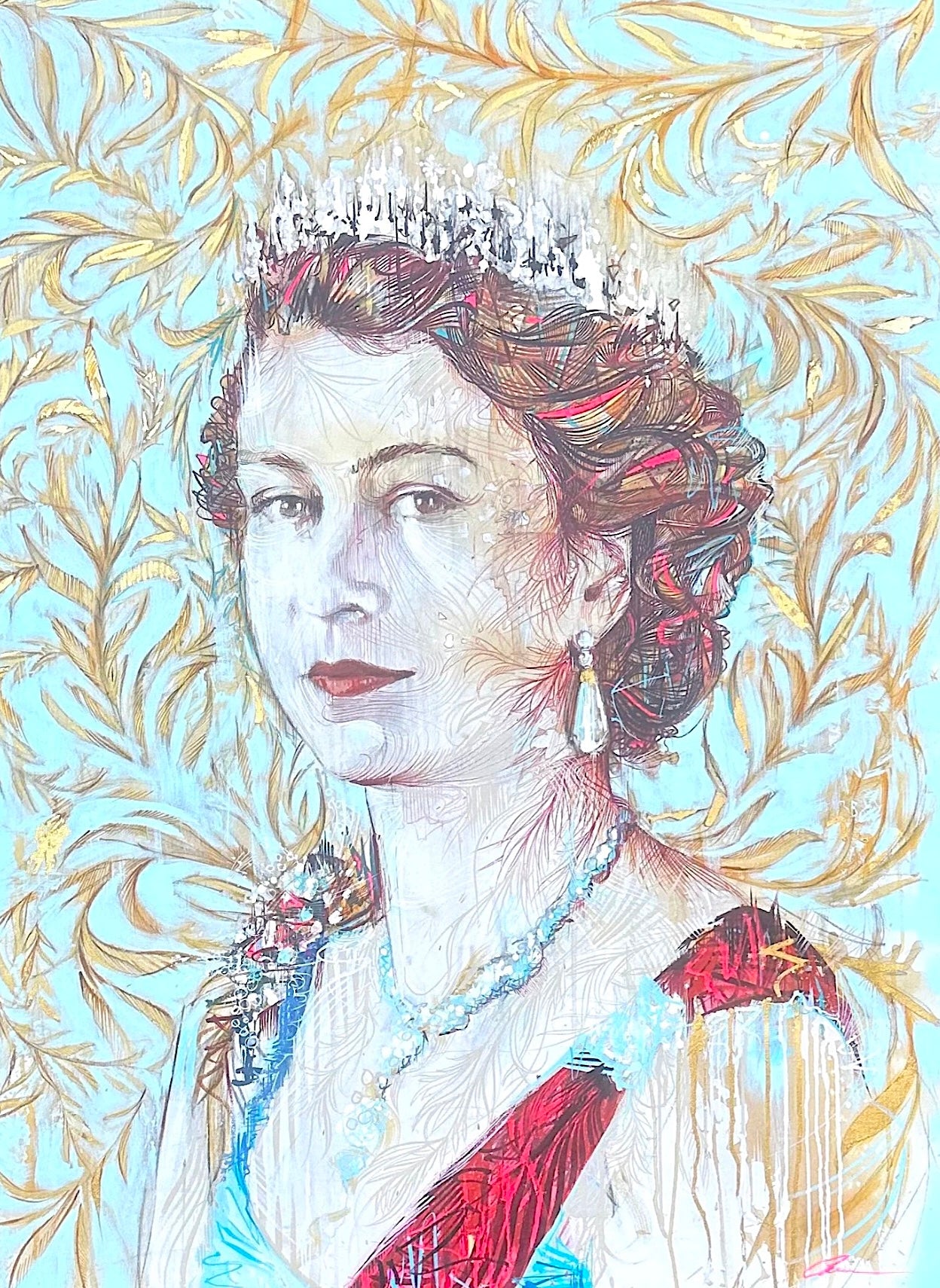 Acrylic, oil and 24 carat gold leaf on canvas
