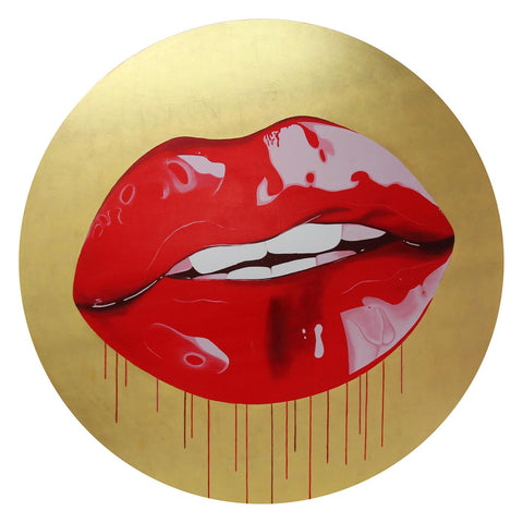 Contemporary artist Sara Pope is well known for her bold, seductive paintings of voluptuous lips. Taking inspiration from her experience working for several years in the fashion industry as a shoe designer, and in magazines as a designer and art director, Sara aims to capture the glamour and seductive power conveyed by the lips and mouth. Raising questions of beauty, consumerism, and the rise of image perfectionism Sara imitates the slickness of advertising, whilst provocatively subverting its themes.